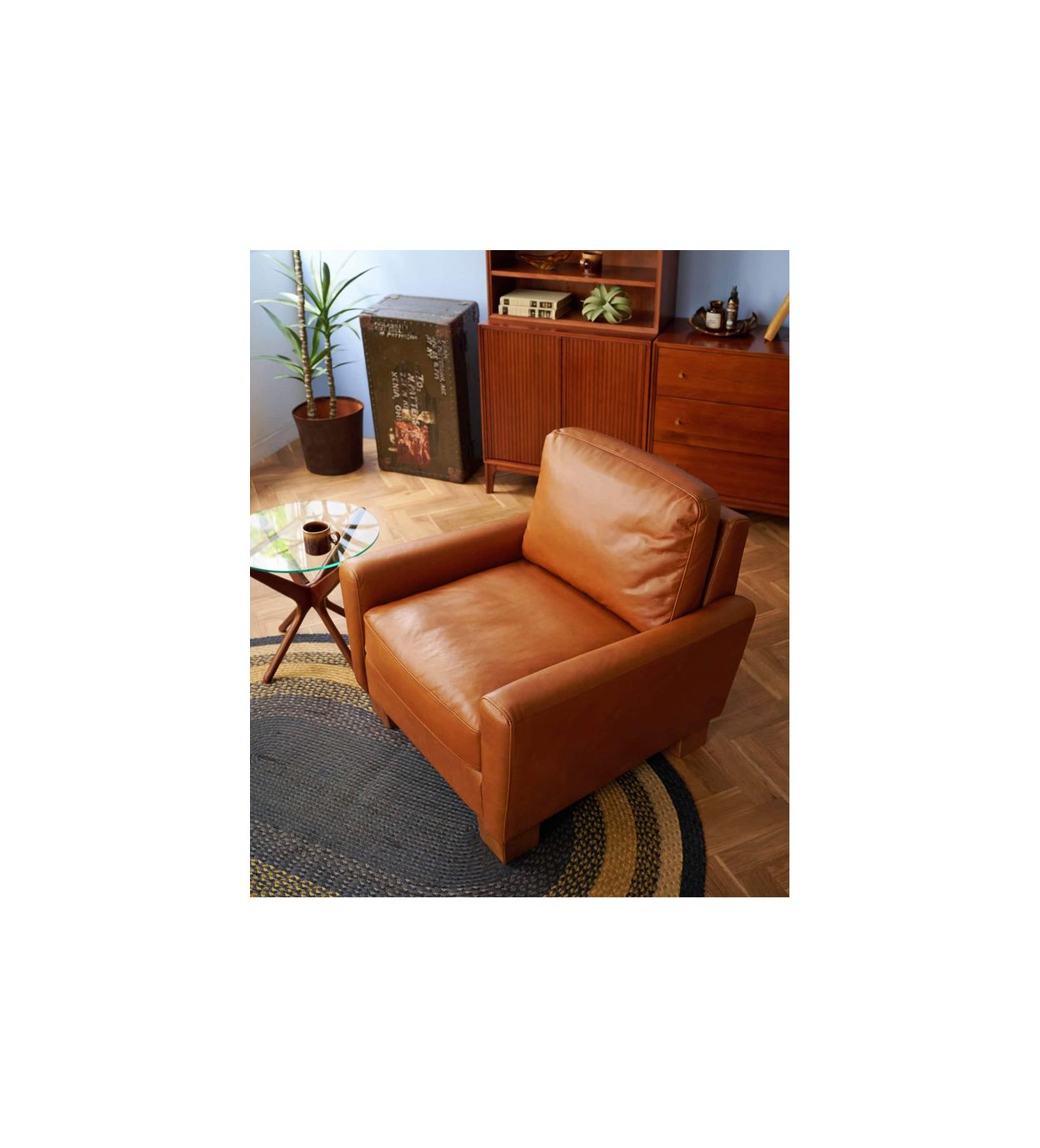 古き良き時代のアメリカビンテージソファを彷彿とさせる、どっしりとしたフォルムが特徴的です。