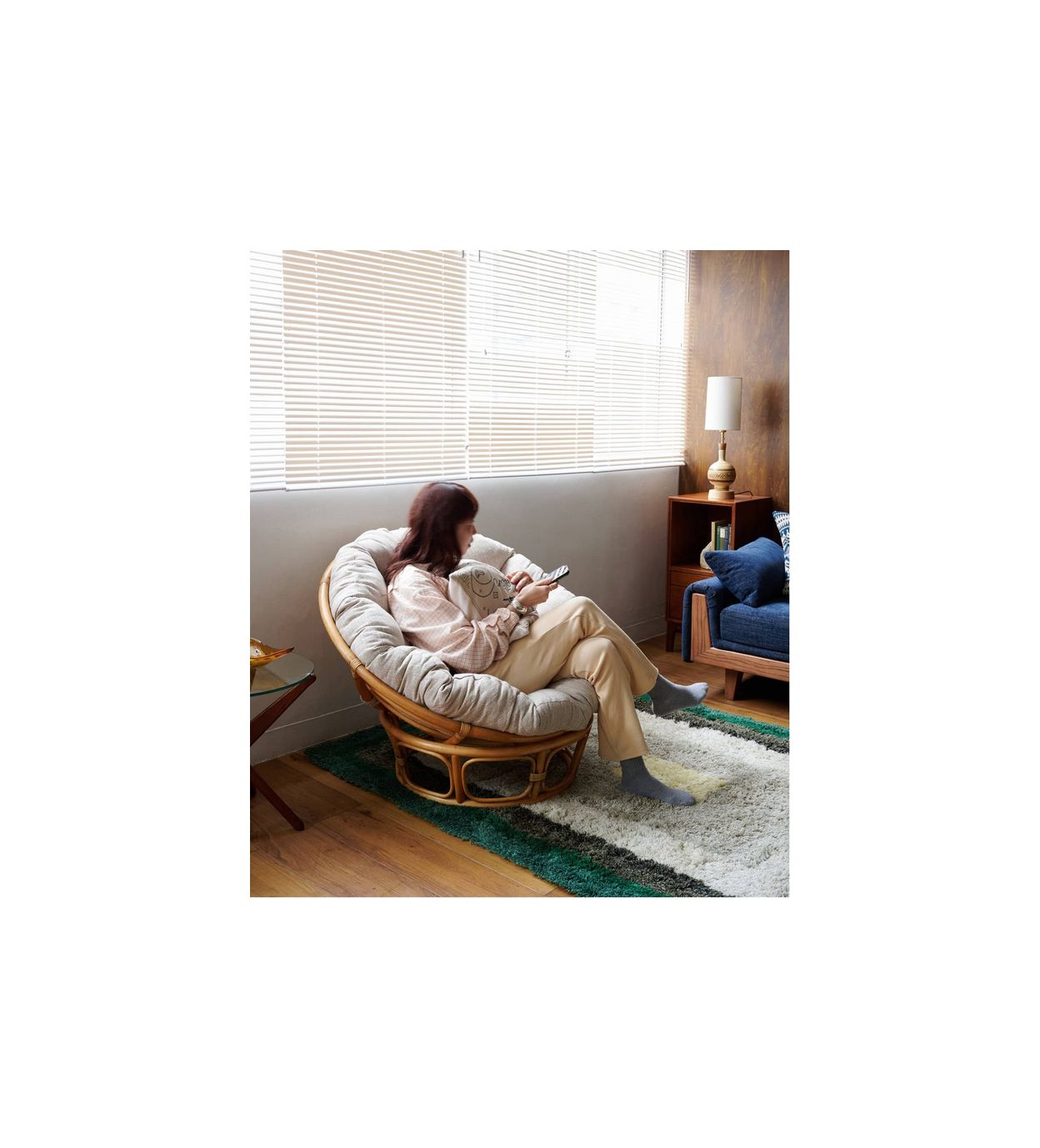あぐらをかいて座る事が可能なサイズになっており、リラックスしてご使用頂けます。