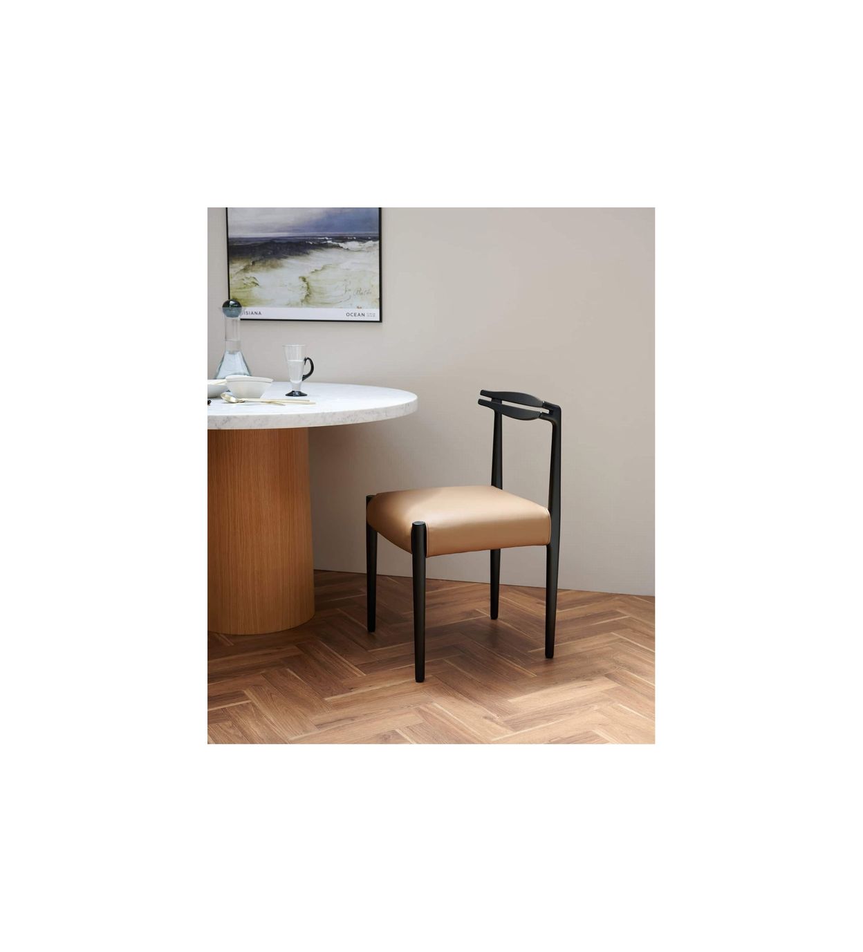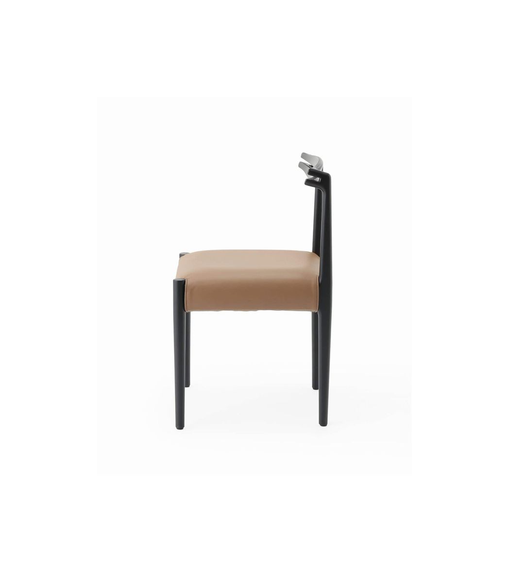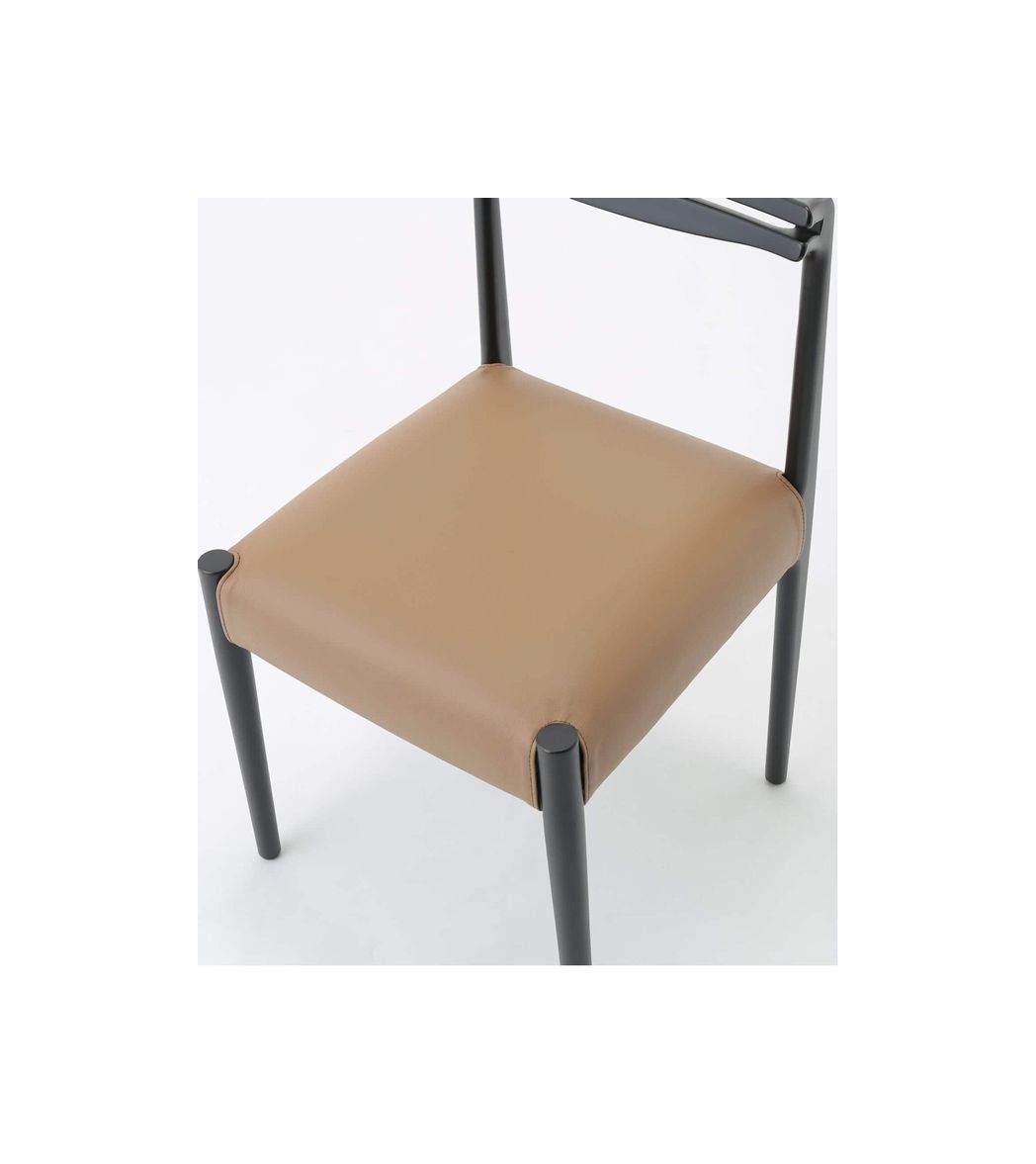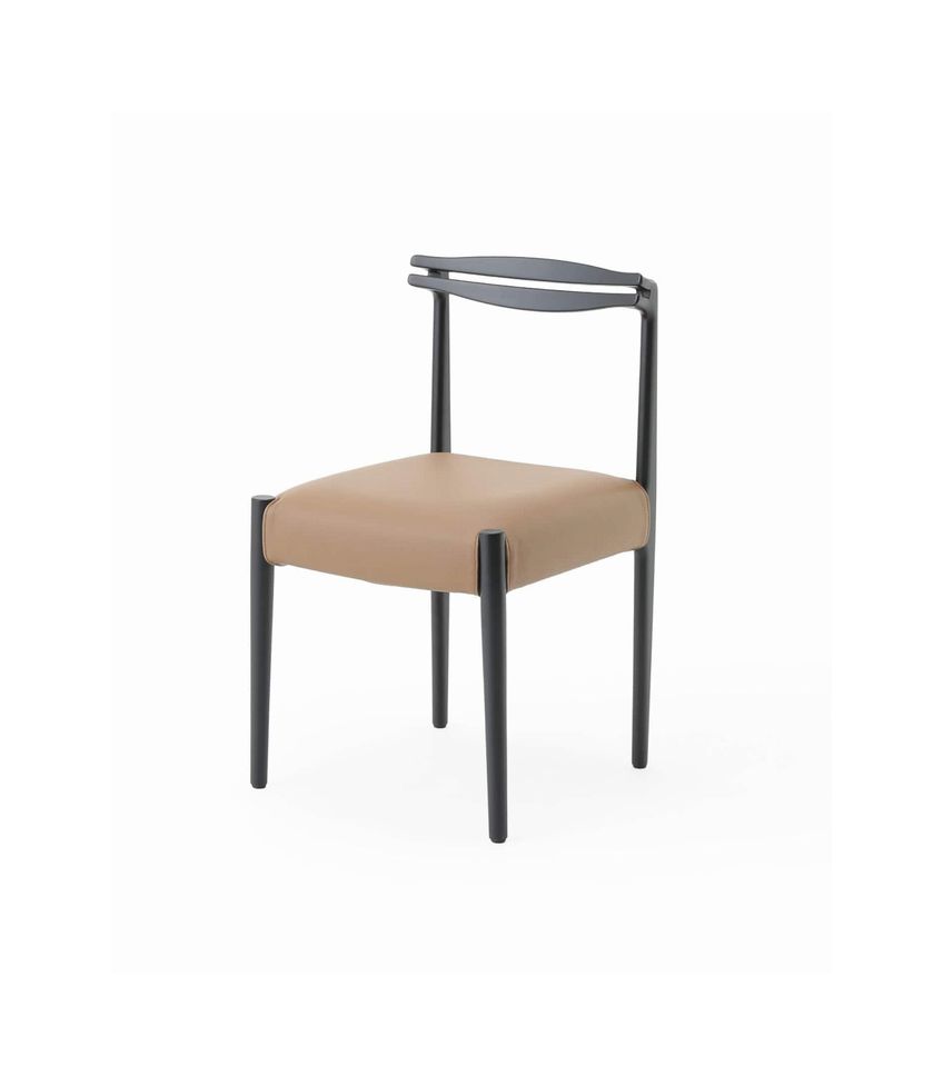 後ろ脚から背もたれへの無垢材の接合が美しいチェア。