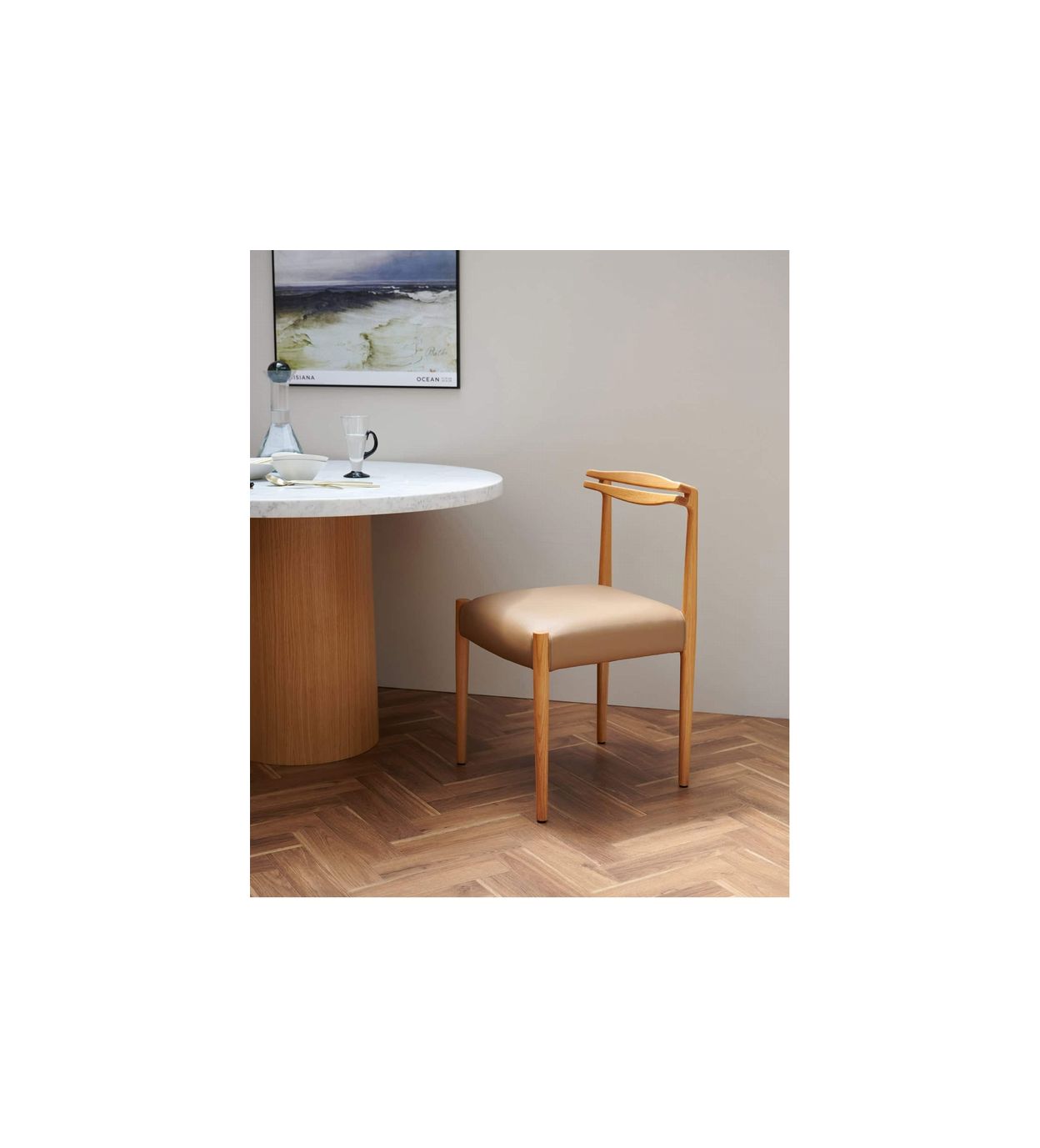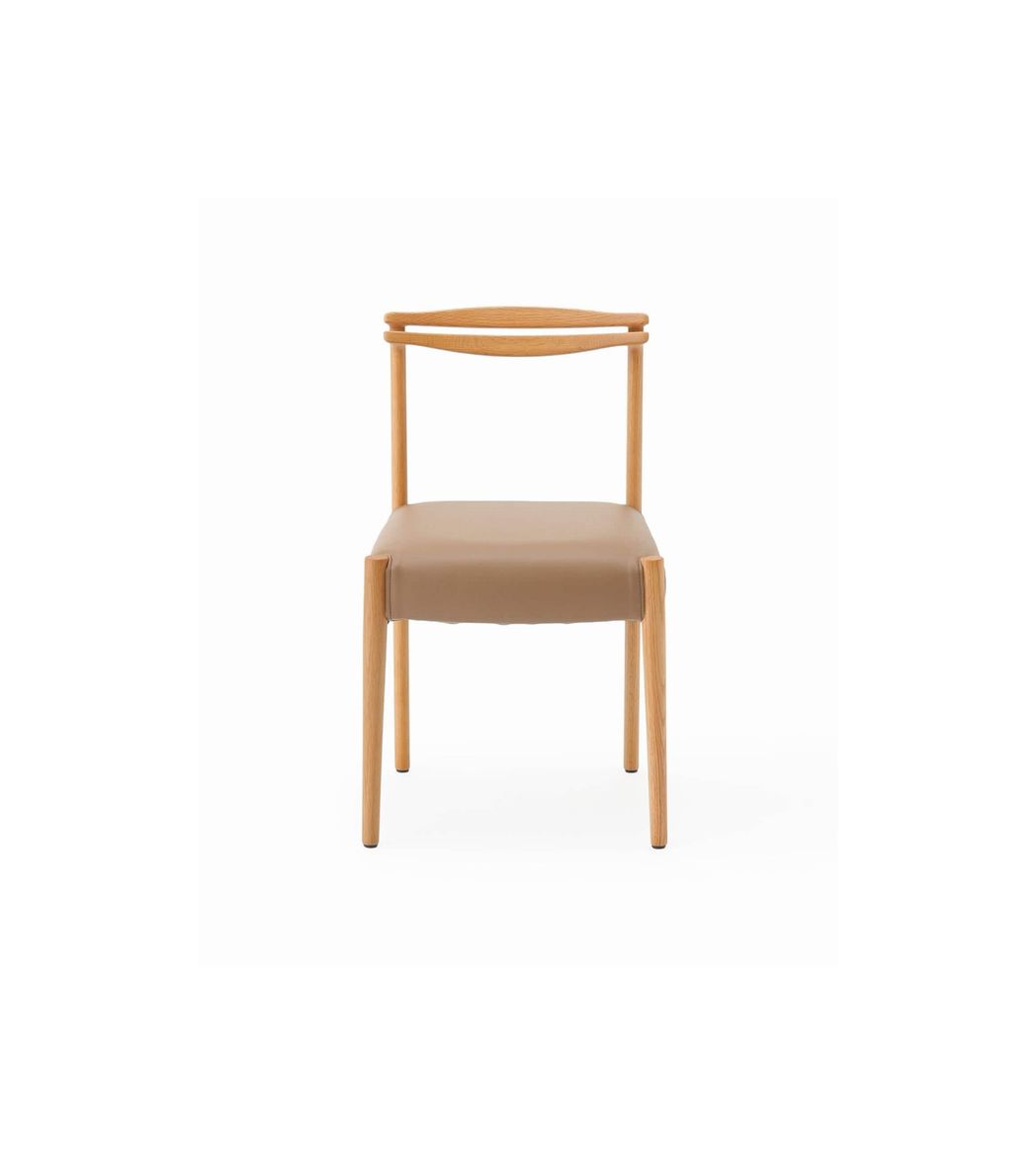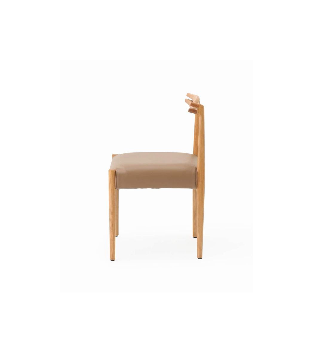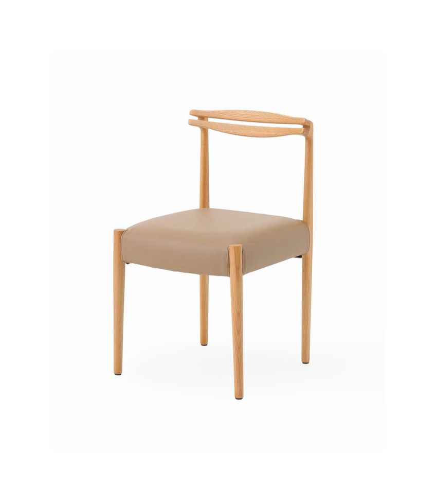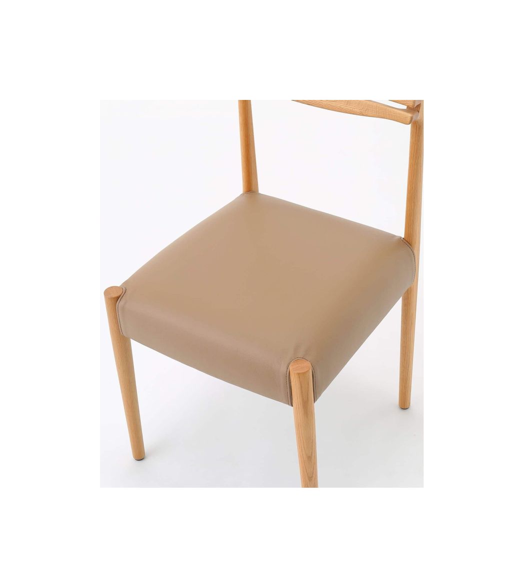 後ろ脚から背もたれへの無垢材の接合が美しいチェア。
