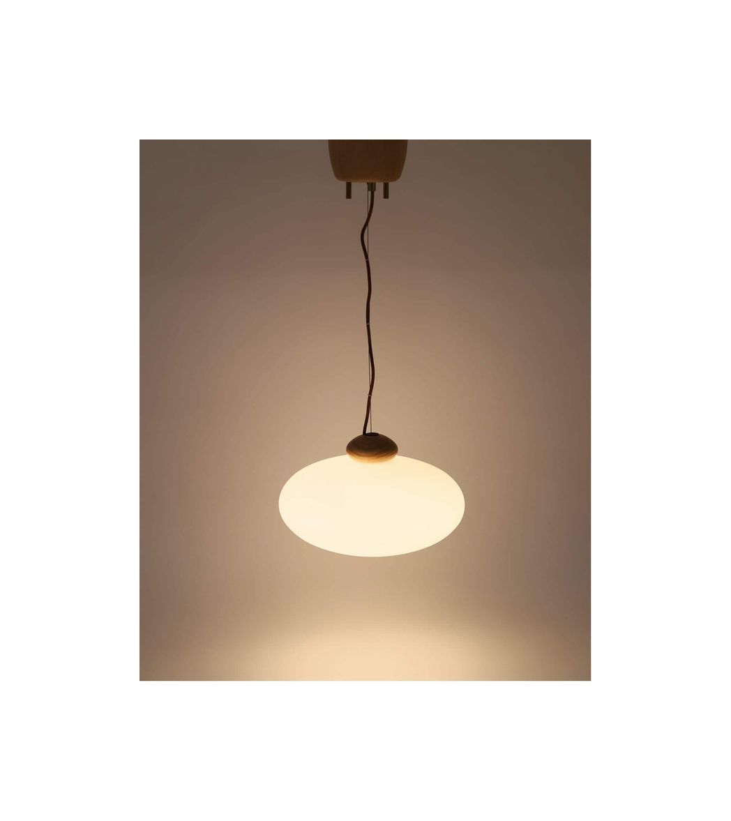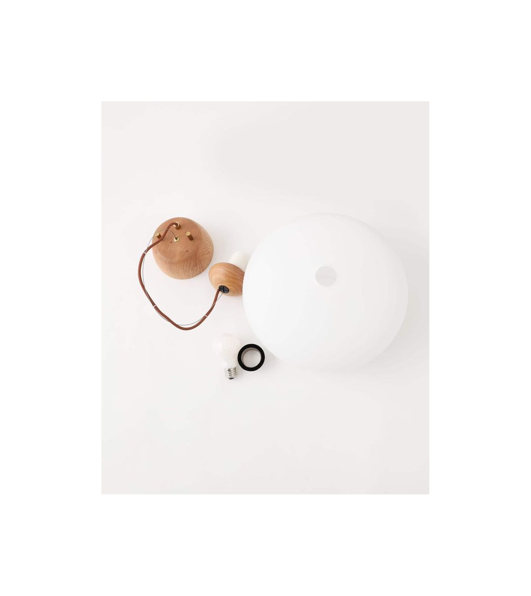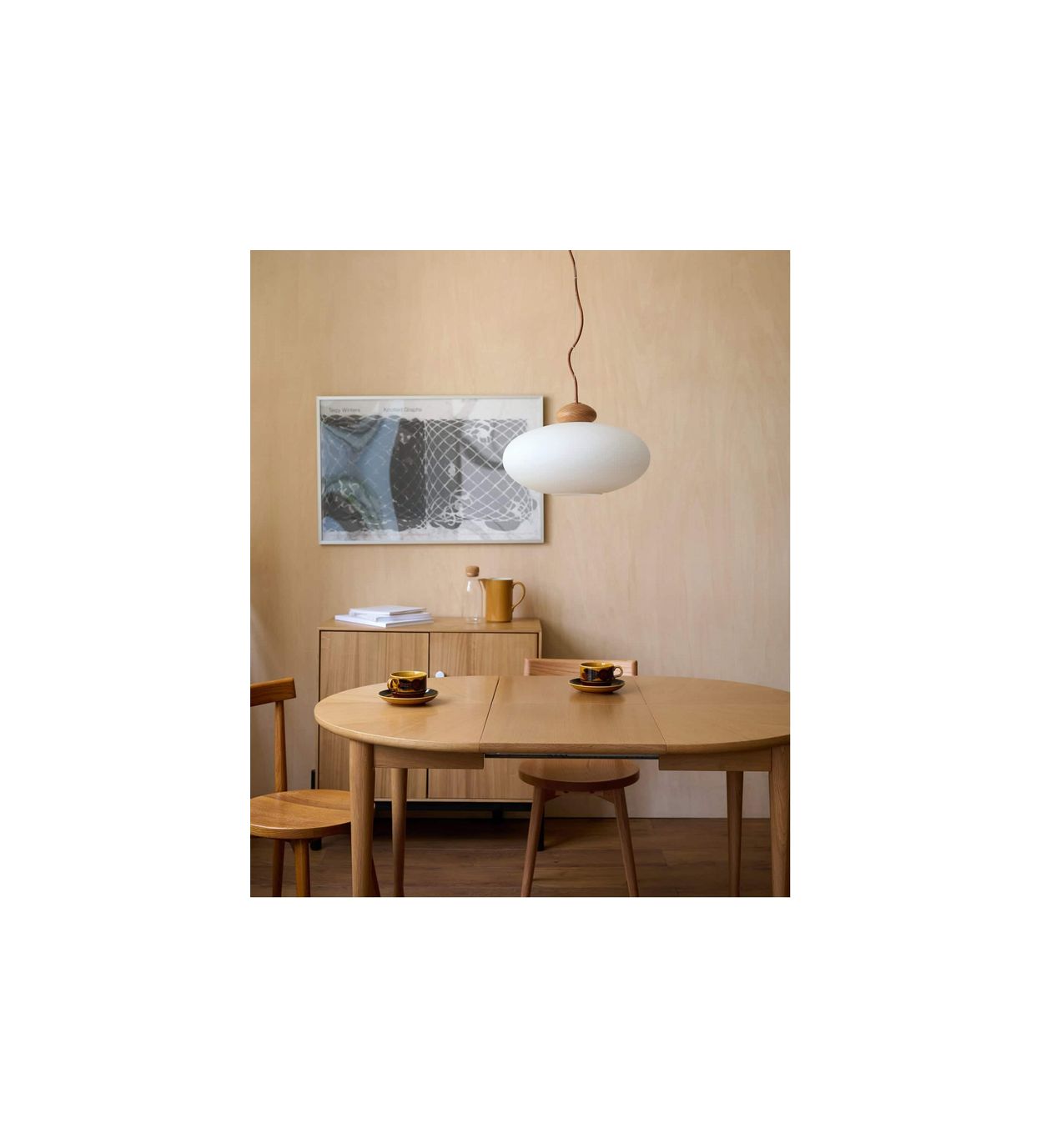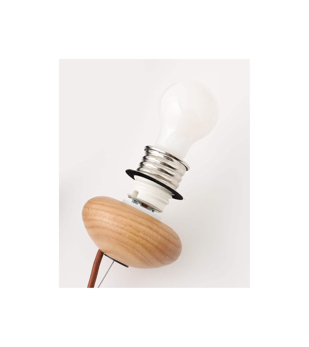 家具にも使われるオーク無垢材を削り出して仕上げた部材を使用したペンダントランプ。