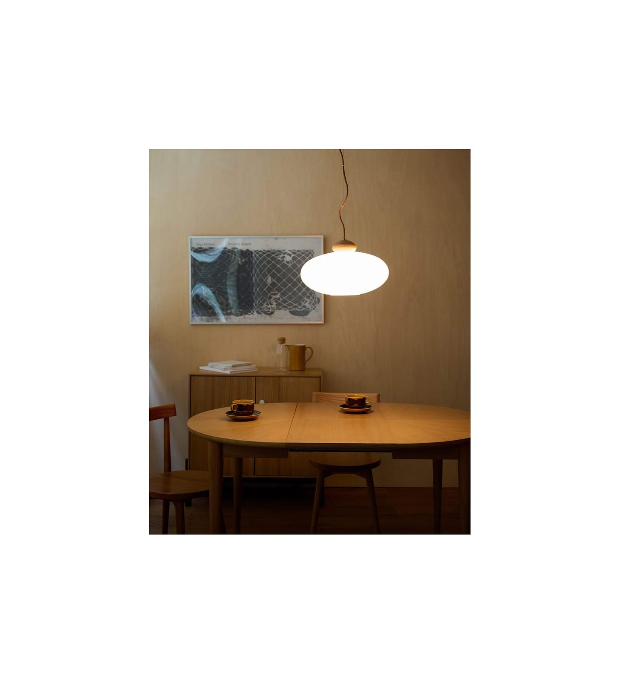 ホワイトガラスのシェードが、空間をやわらかく包み込むように灯します。