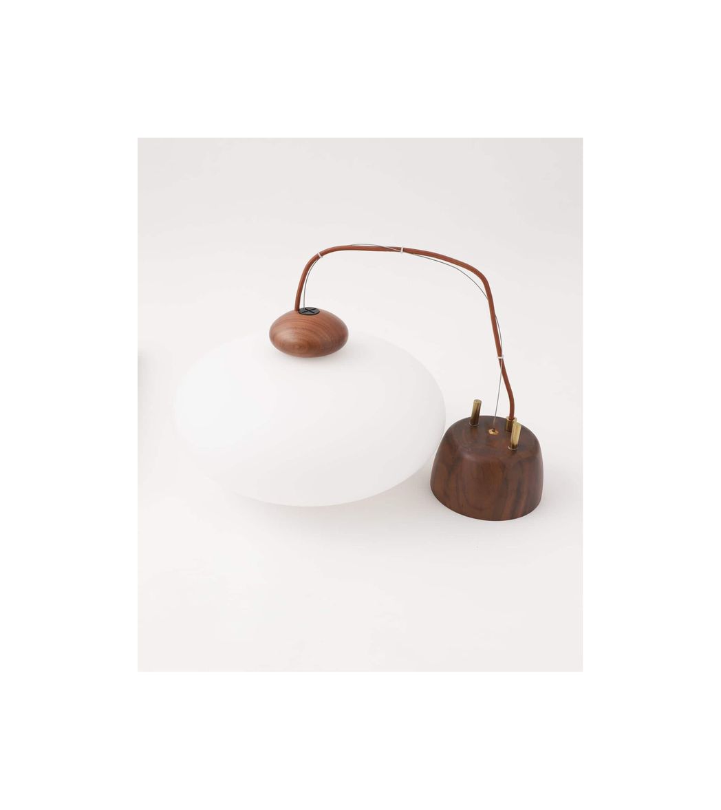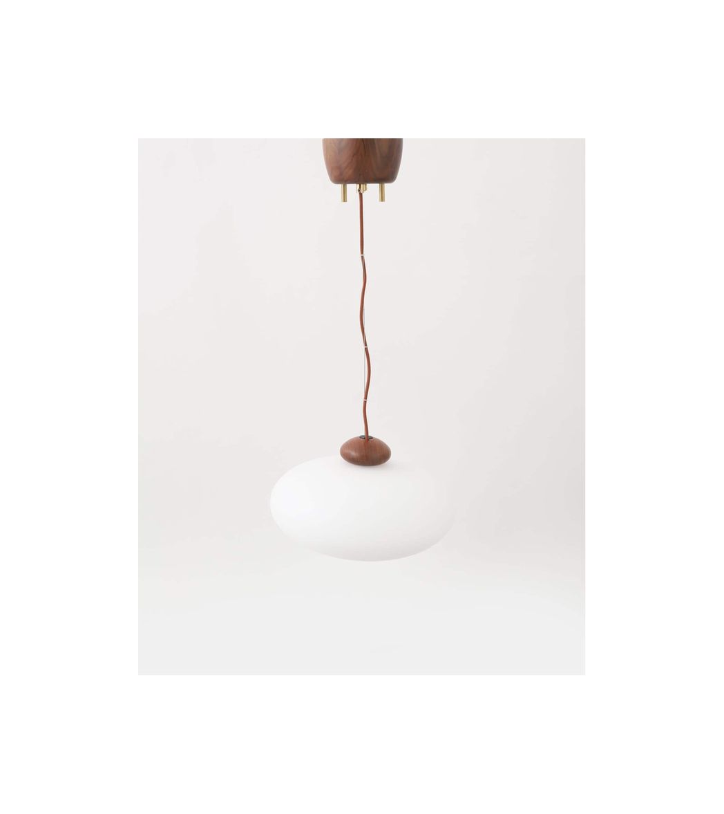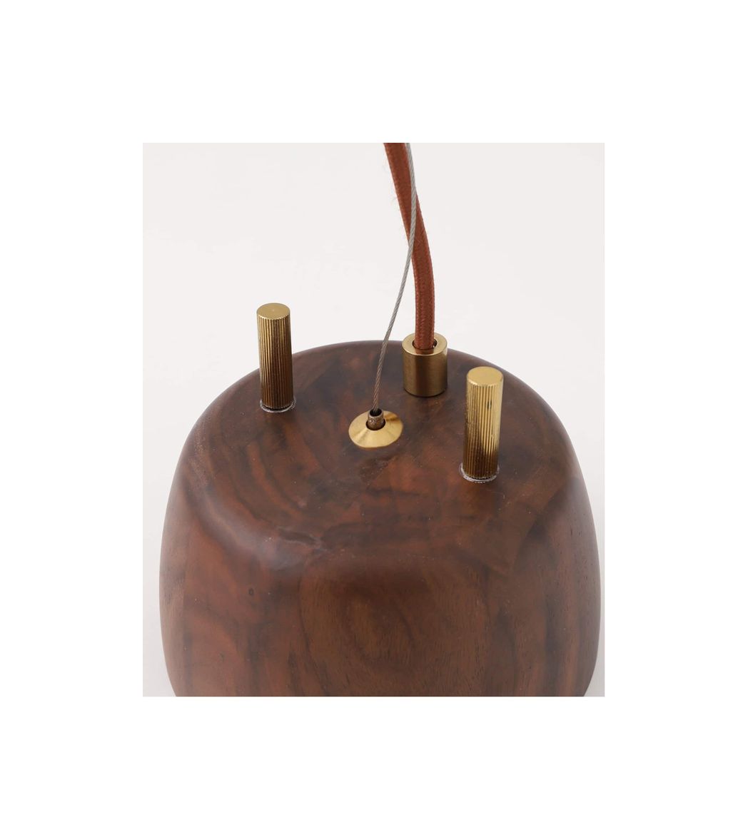 家具にも使われるウォルナット無垢材を削り出して仕上げた部材を使用したペンダントランプ。