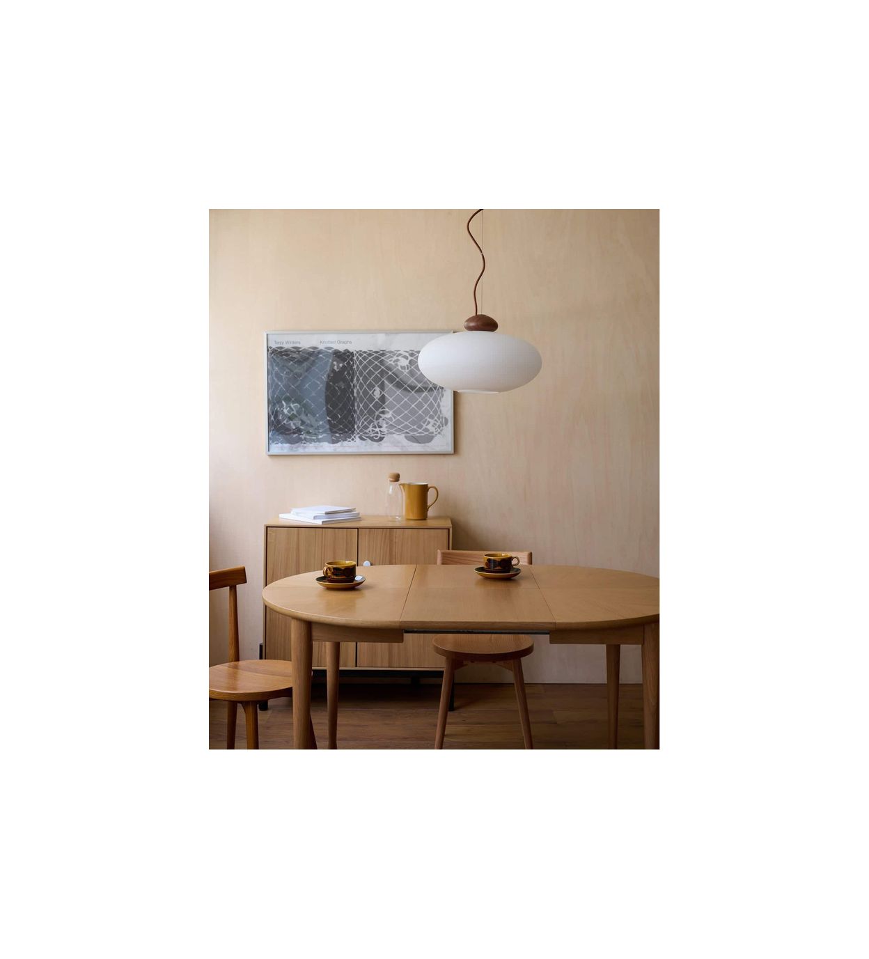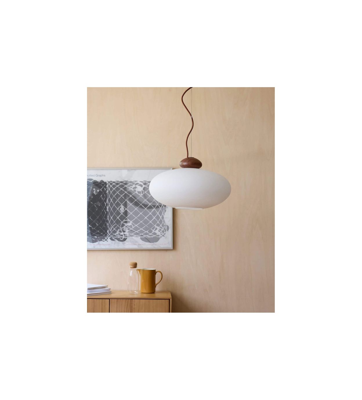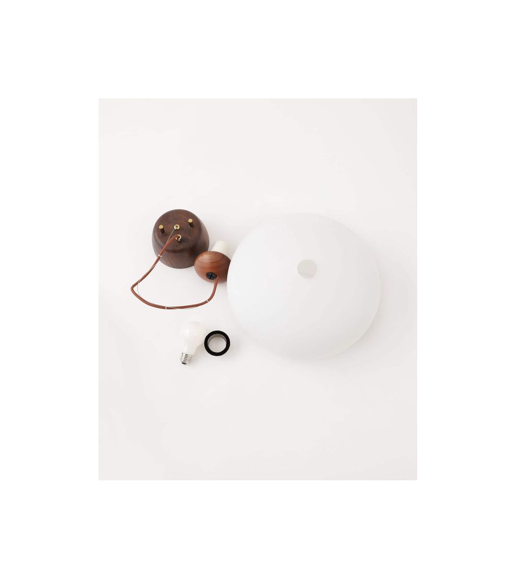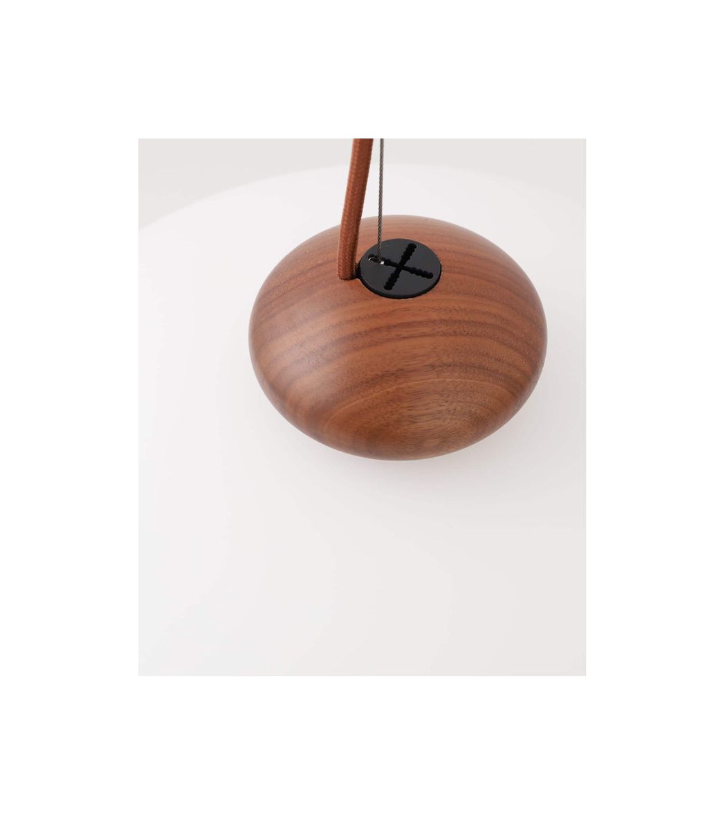 家具にも使われるウォルナット無垢材を削り出して仕上げた部材を使用したペンダントランプ。