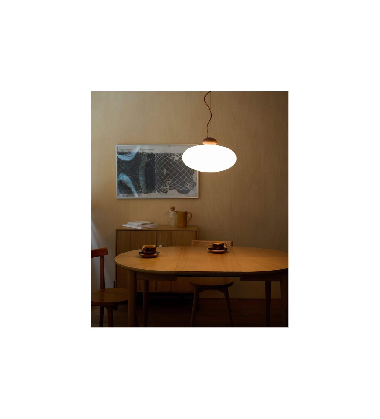 ホワイトガラスのシェードが、空間をやわらかく包み込むように灯します。