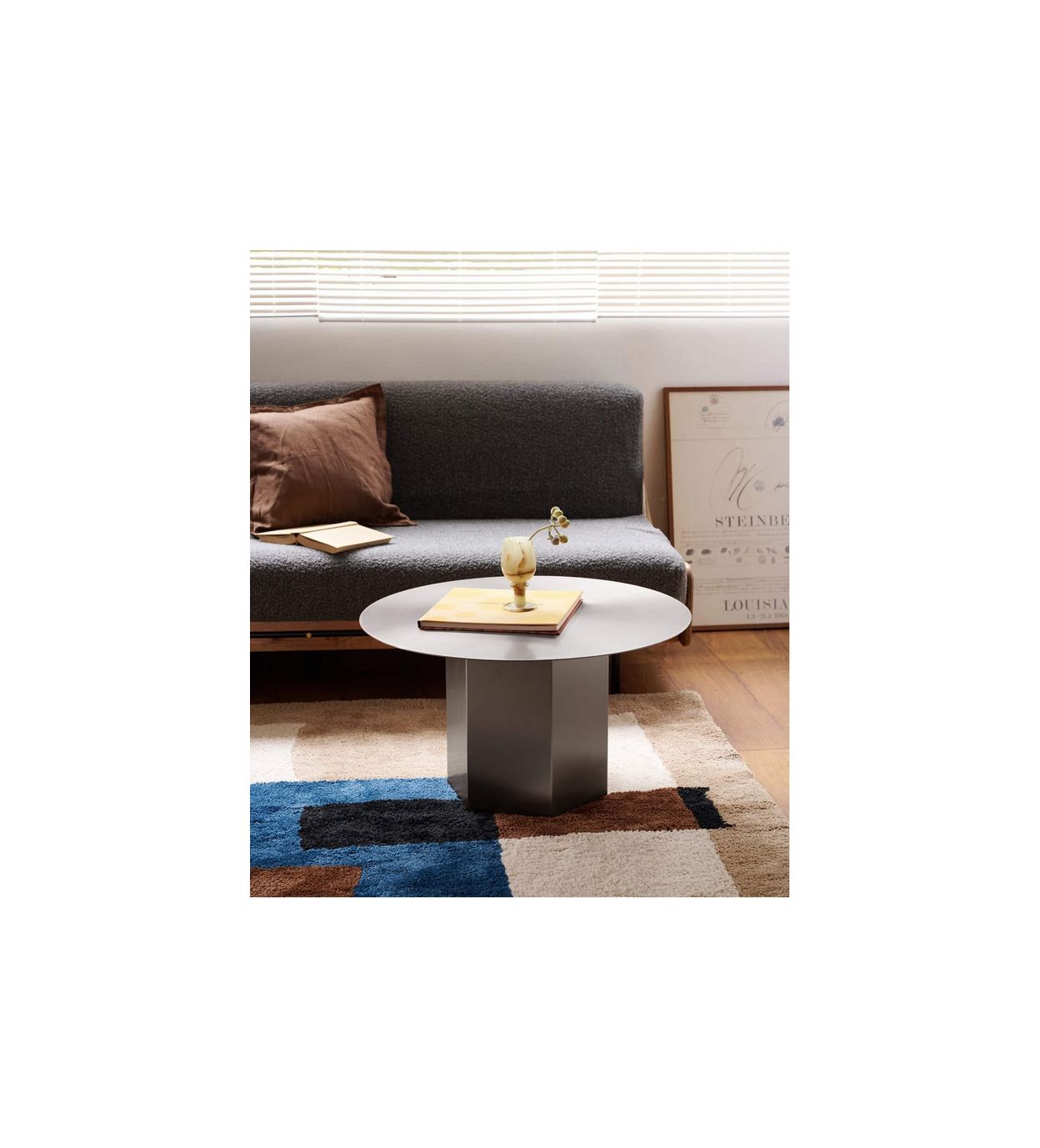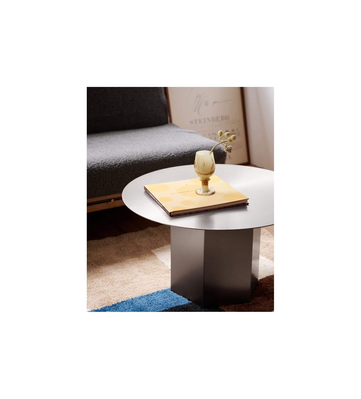 カップや書籍を置くのはもちろん、花器やオブジェを飾る台としても美しく映え、日常のワンシーンを引き立てます。