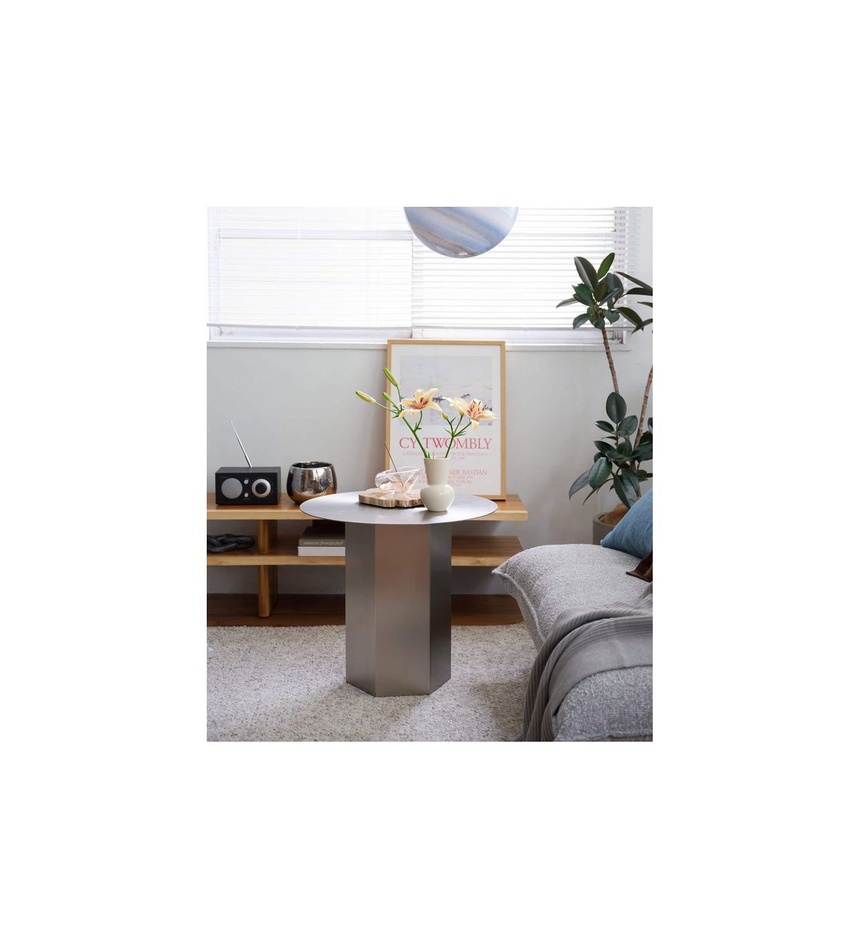 リビングシーンにほどよい緊張感をもたらす、洗練されたデザインのサイドテーブル。
