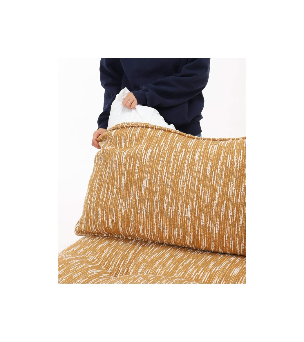 広い座面を最大限に楽しむため、背もたれは自由に場所を変えられる 特大サイズのクッションです。 包まれるような柔らかさを実現しました。身体を預け、まるで大きなペットのような抱き心地を楽しめます。