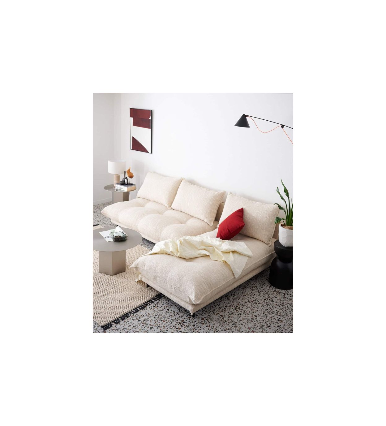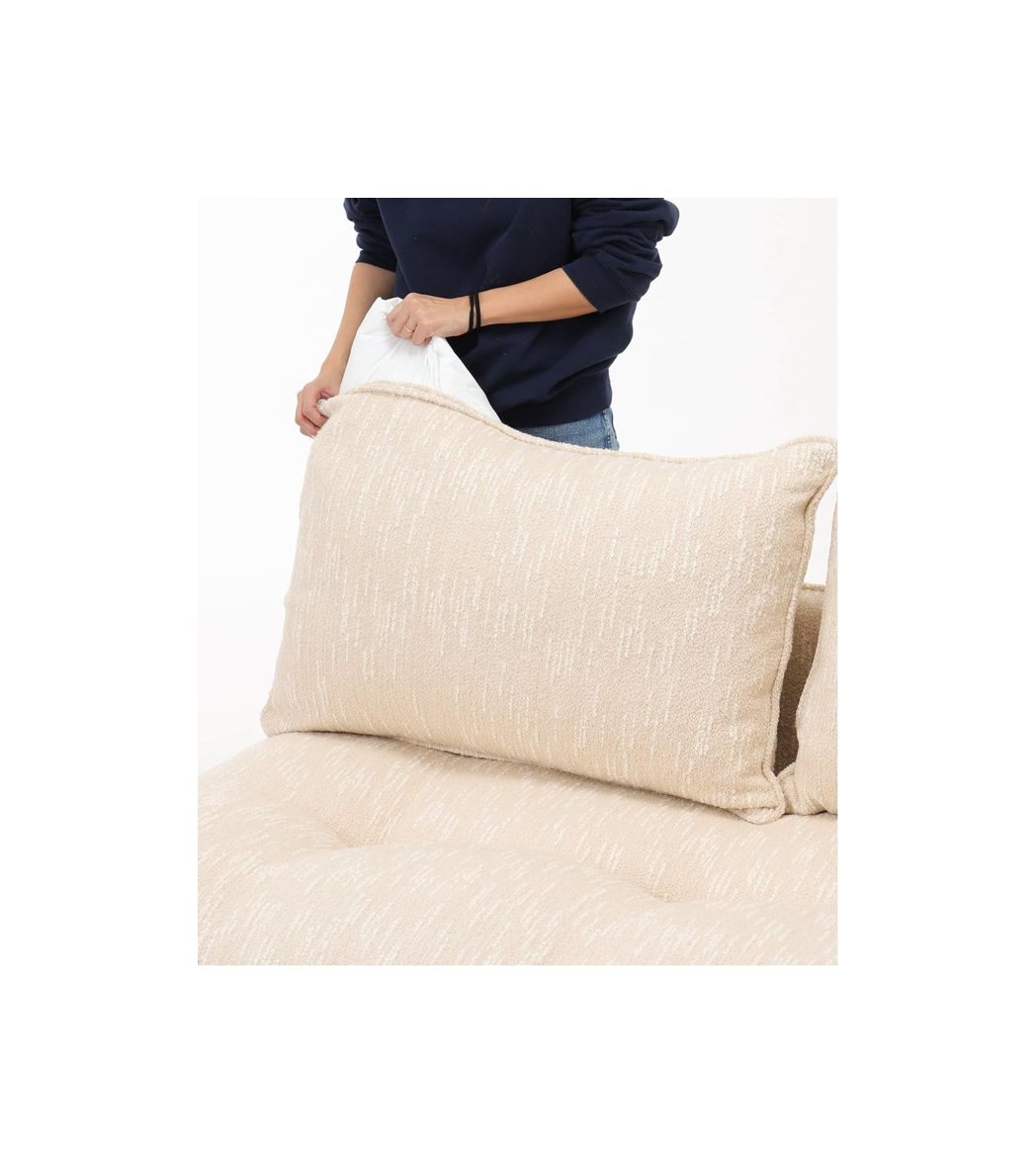 広い座面を最大限に楽しむため、背もたれは自由に場所を変えられる 特大サイズのクッションです。 包まれるような柔らかさを実現しました。身体を預け、まるで大きなペットのような抱き心地を楽しめます。