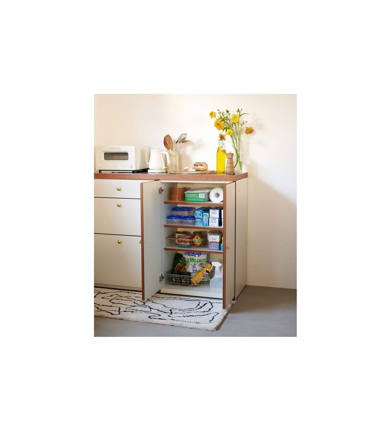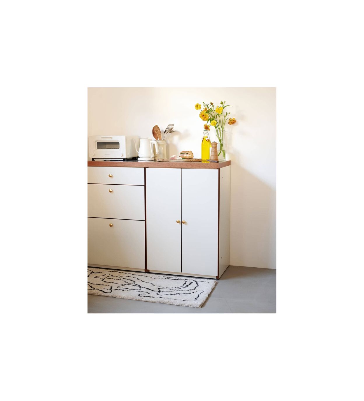 また、組み合わせ次第ではキッチンカウンターとしてだけでなく、ワードローブなどの衣装スペースや、リビングでの収納家具としてもお使いいただける汎用性を備えています。