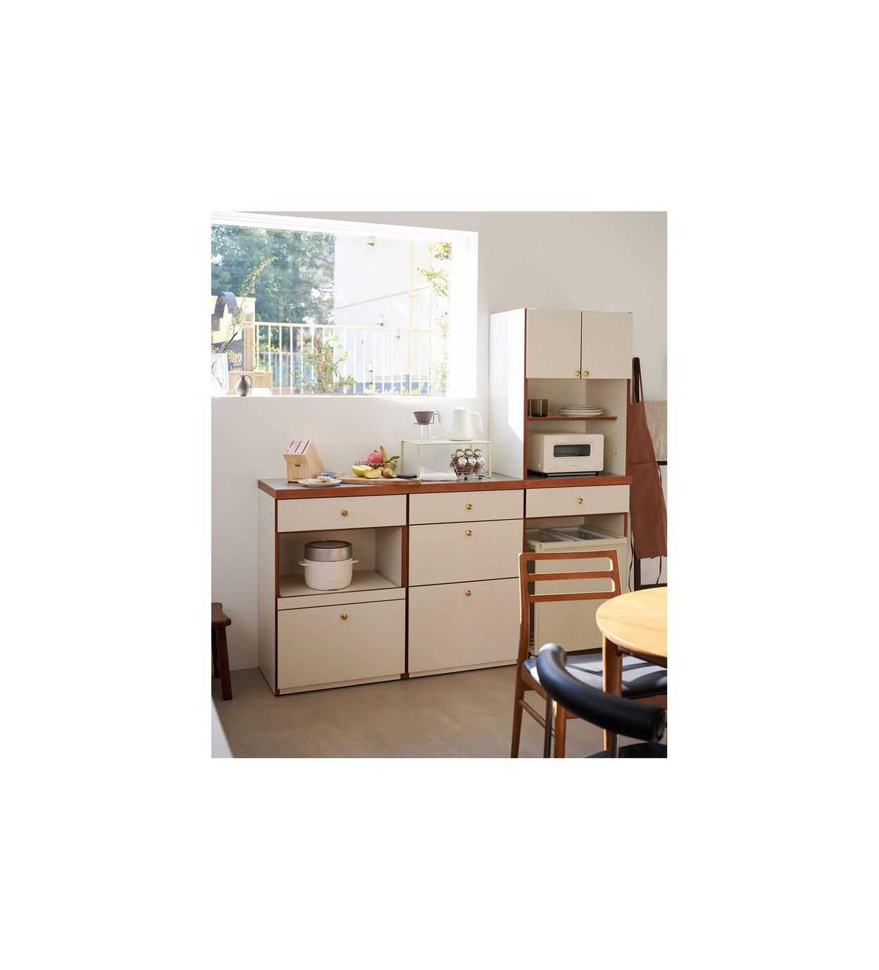 また、組み合わせ次第ではキッチンカウンターとしてだけでなく、ワードローブなどの衣装スペースや、リビングでの収納家具としてもお使いいただける汎用性を備えています。