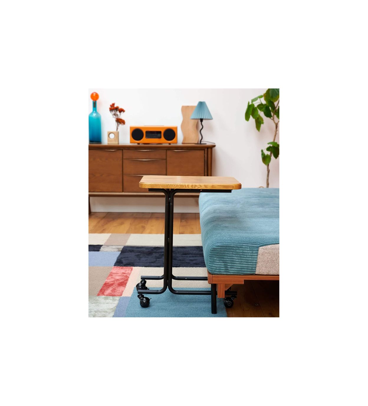キャスター付きの仕様で、テーブルを体の近くまでスムーズに引き寄せることができるのが最大の特徴。