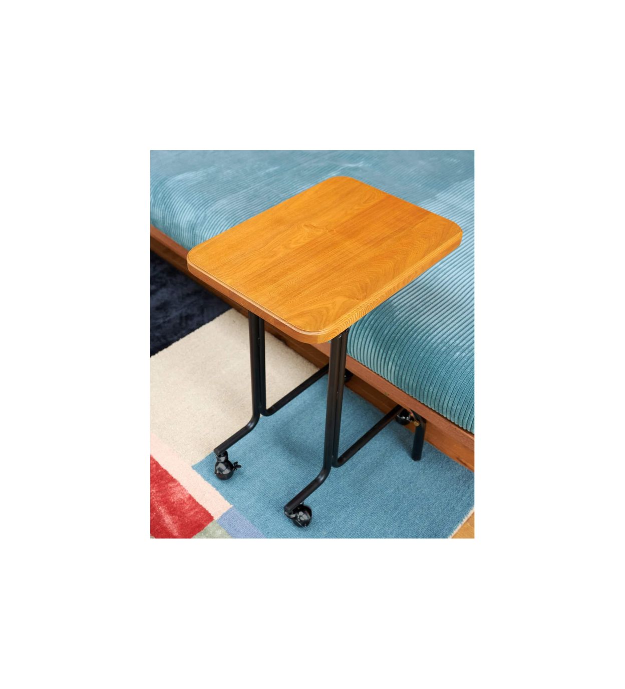 キャスター付きの仕様で、テーブルを体の近くまでスムーズに引き寄せることができるのが最大の特徴。