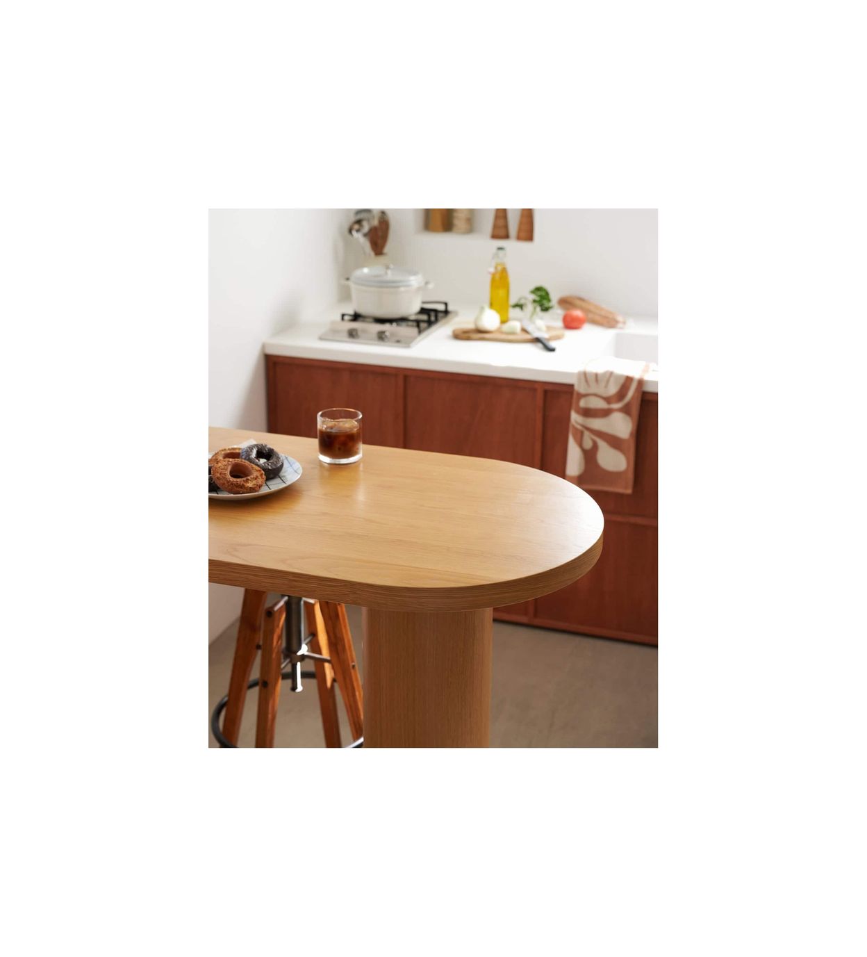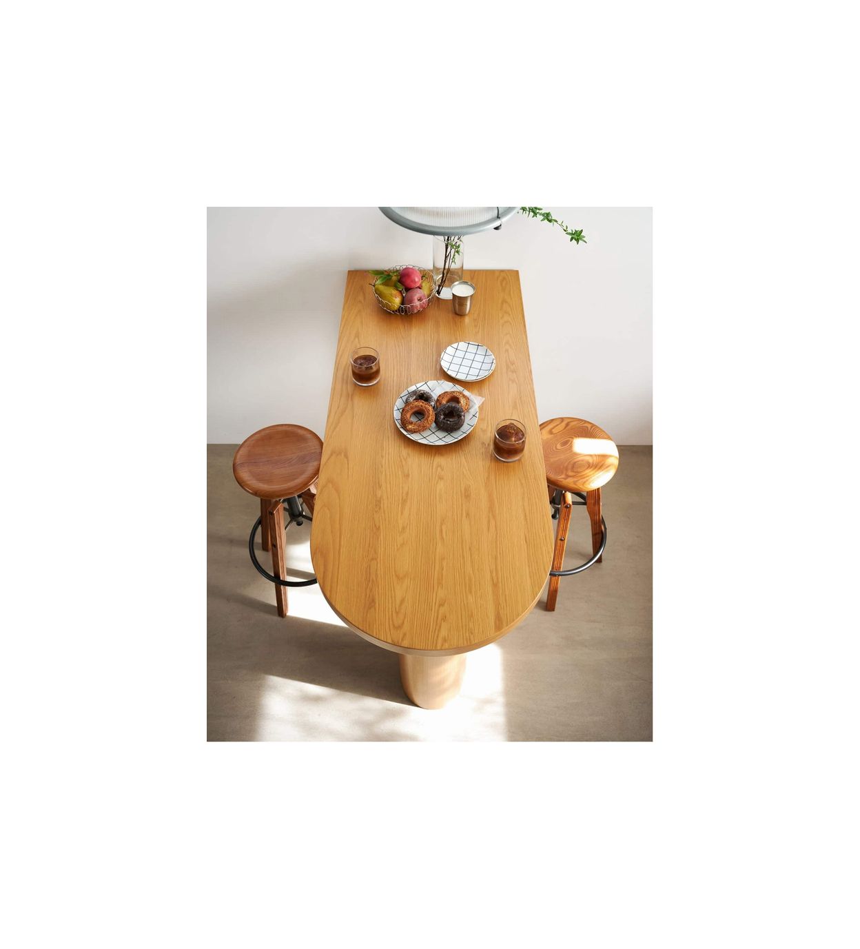 デザイン面では、円形部分の木口に無垢材を使用し、見た目の美しさと耐久性を両立。
