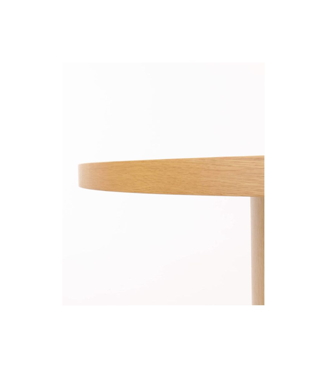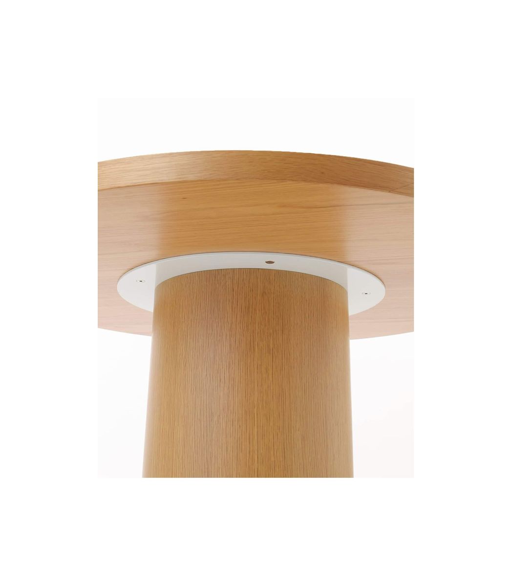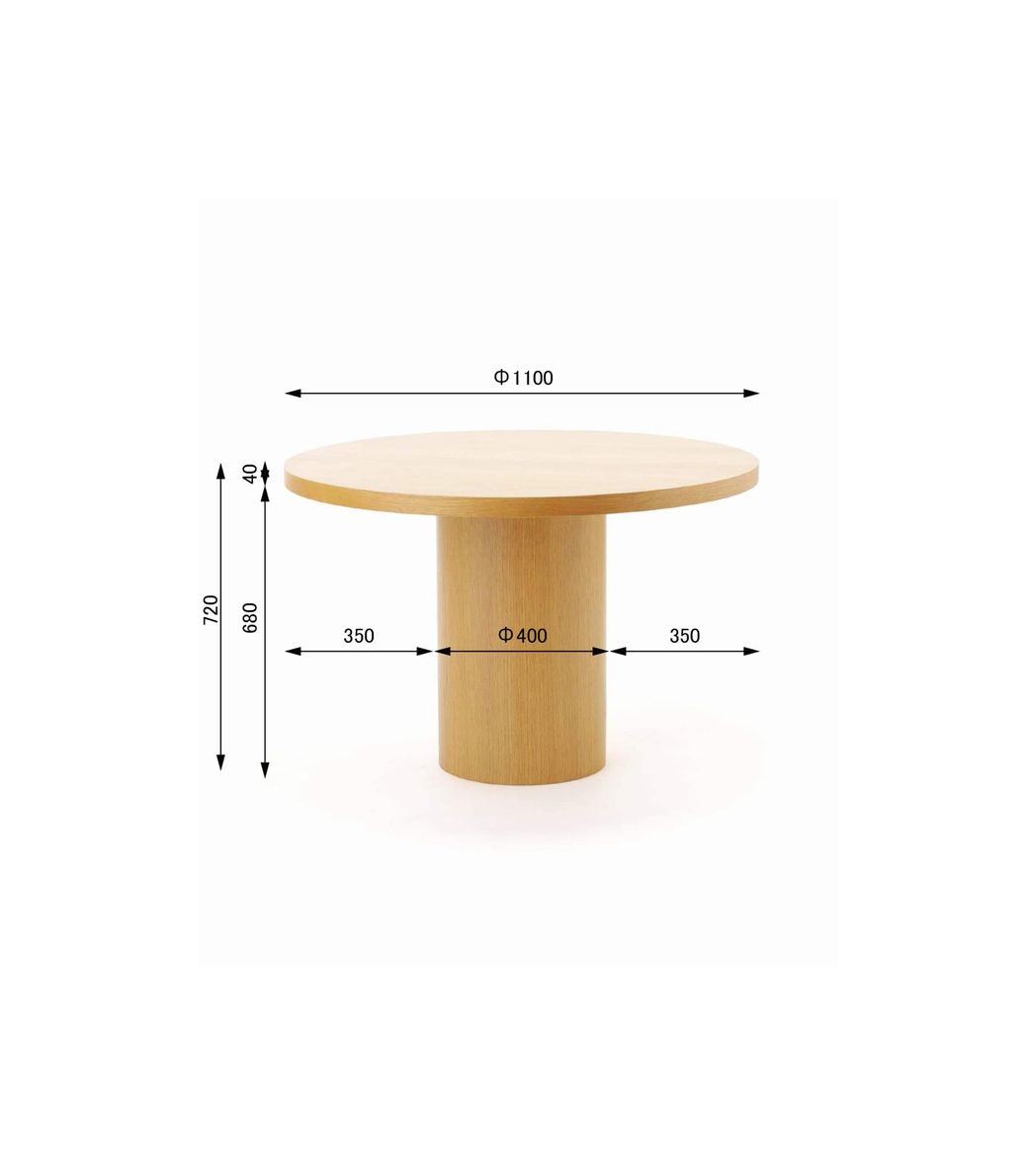 天板の厚みや円柱の脚など、シリーズならではの特徴をそのままに、円形ならではの柔らかな印象をプラスしました。