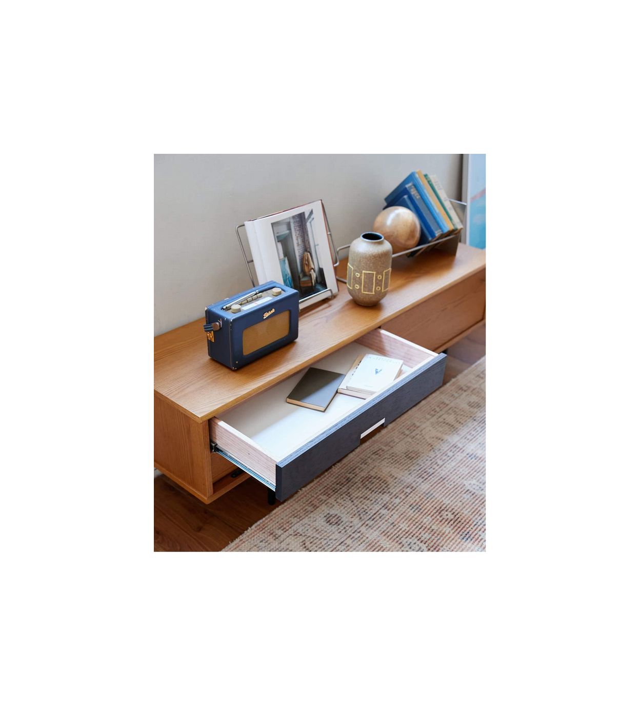 抽斗の前板にはブラック塗装を施し、北欧ヴィンテージを感じさせる佇まいの中に、引き締まったモダンな印象をプラス。